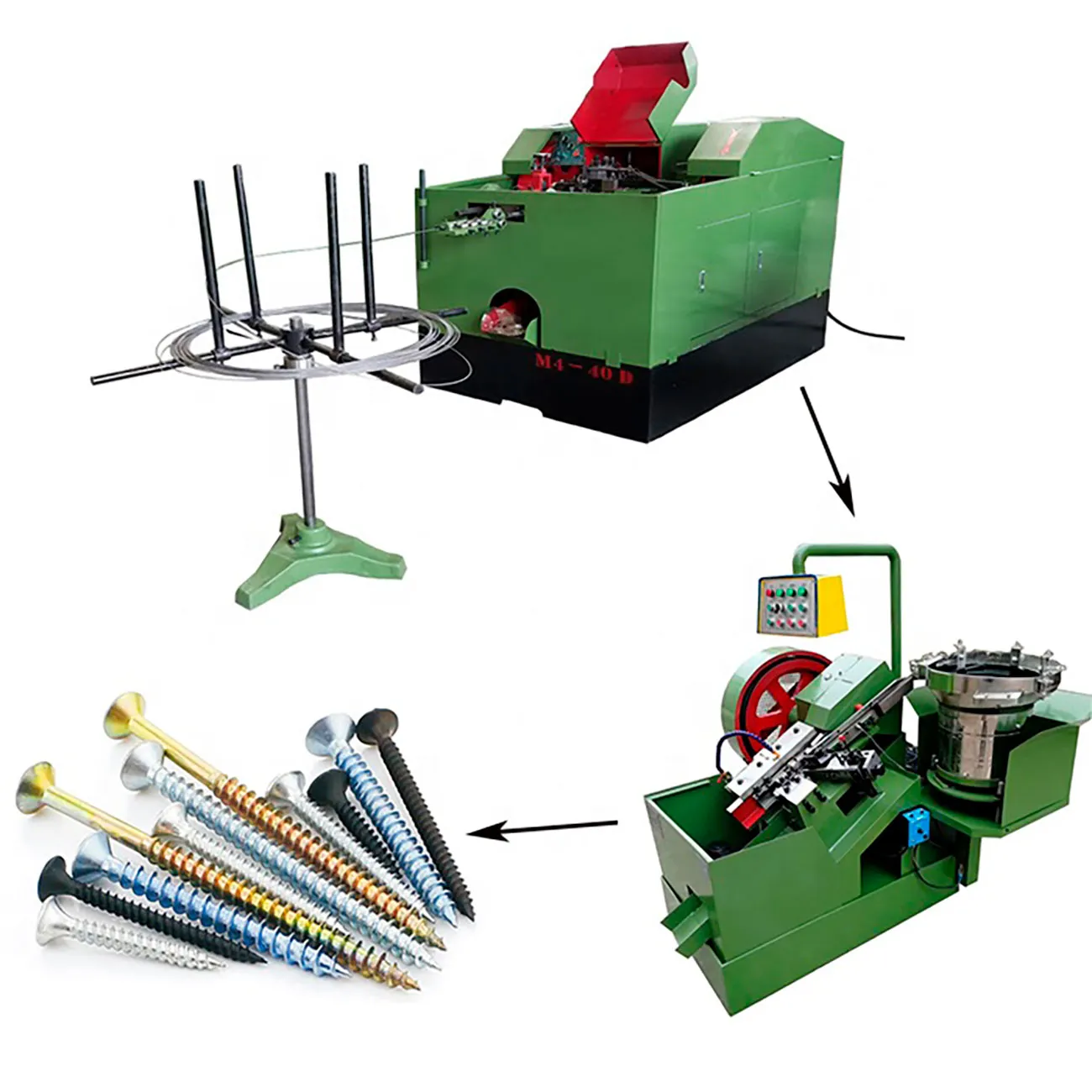 | Модель | Максимум. Диаметр винта. (мм) | Максимум. Длина винта (мм) | Производительность (шт/мин) | Двигатель (кВт) | Вес ( тонн) | Габаритные размеры (м) |