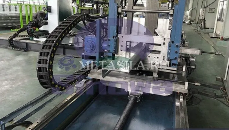 В рамках производственной линии взаимодействует с резьбонакатным аппаратом, формирующий резьбу на заготовках.